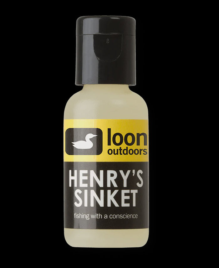 A sinking agent for getting bugs down right now; no more waiting for materials to become saturated with water.Flies treated with Henry’s Sinket quickly break surface tension and rapidly drop in the water column to where the fish are. It helps nymphs get deep, where they roll along the bottom as naturally dislodged nymphs would. It’s especially effective on streamers, getting flies down on the first cast rather than waiting until the materials become saturated. Henry’s Sinket is completely biodegradable.